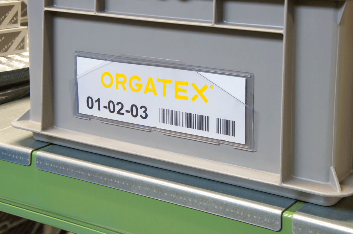 Haben Sie sich auch schon mal die Frage gestellt, wie Sie Ihre Artikelnummer oder Kennzeichnung bei einem Stapel Kartonagen ideal platzieren können? Unsere Antwort: mit dem einsteckbaren Beleghalter aus transparentem Hart-PVC von ORGATEX.