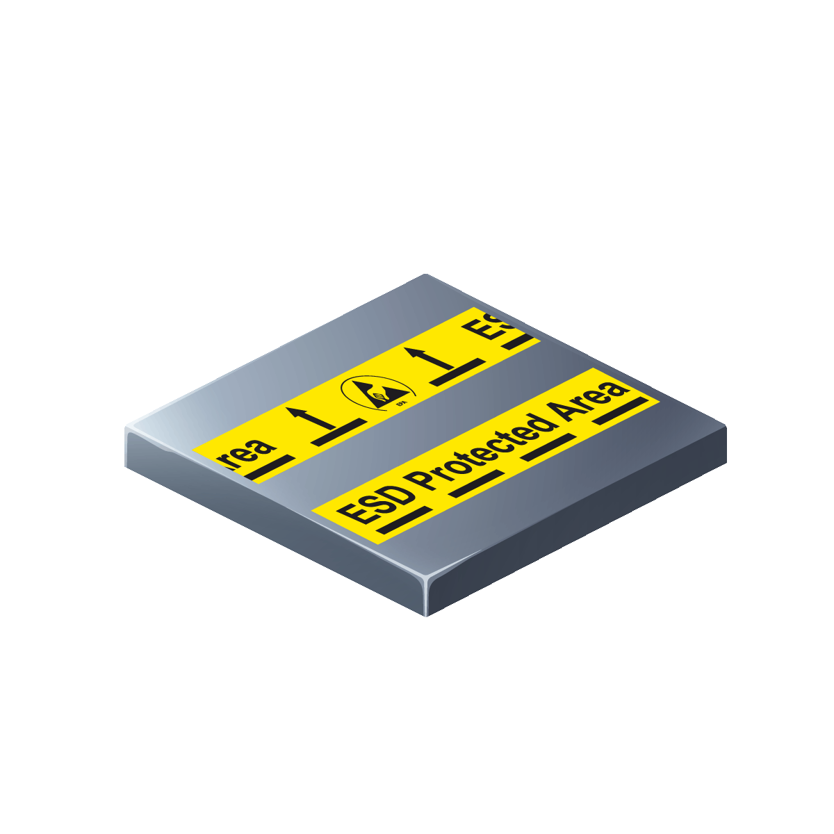- Bodenmarkierungen & Warnschilder – z. B. LongLife-Bänder und Bodenschilder zur Kennzeichnung von ESD-Zonen.