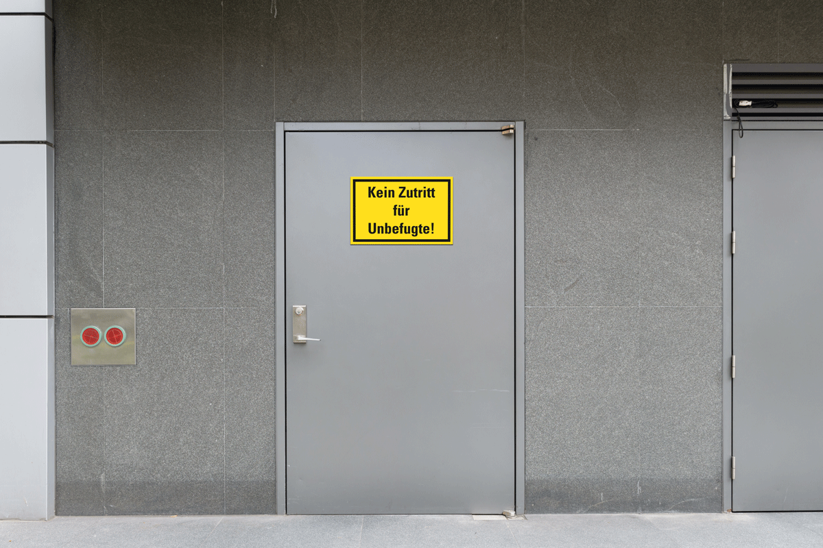 - Kleinere Hinweisschilder: Für Büro- oder Lagerräume, in denen keine besonderen Gefahren bestehen, sind kleinere Formate (z. B. A4) oder 15 mal 15 Zentimetern ausreichend.