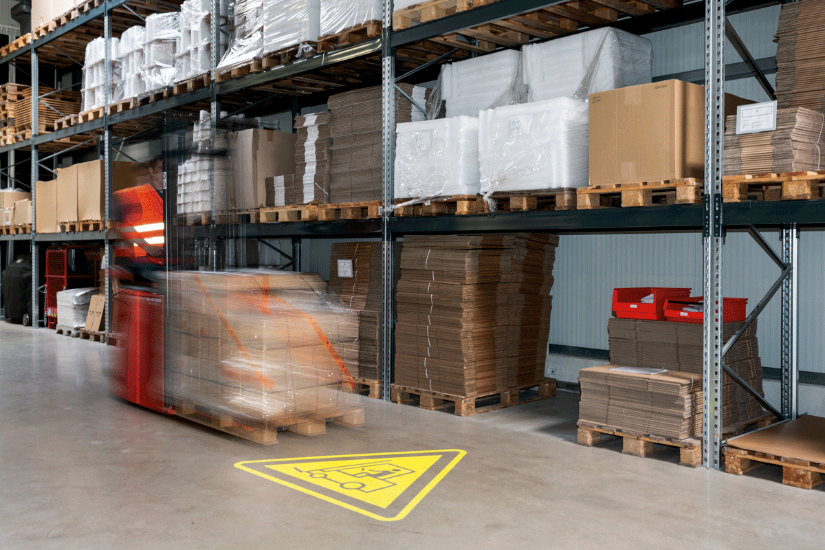 Auch ein stark befahrener Weg und Bereiche in Produktion, Logistik und Lager, in denen Fahrzeuge häufig drehen und wenden, stellen hohe Anforderungen an das Material zum visuellen Management. Hier kommt unser OX-Spot ins Spiel: Die Motive für Sicherheitsschilder und Hinweisschilder werden auf den Boden projiziert und sind dort nicht nur dauerhaft, sondern auch im Dunkeln sichtbar.