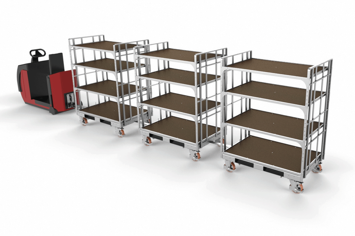 Die weiten Wege in Lager oder Halle können mit dem Wagen schnell zurückgelegt werden: Ihre Mitarbeiter müssen denselben Weg nur einmal gehen, um alle notwendigen Werkzeuge, Bauteile und Materialien genau dort zur Verfügung zu haben, wo sie gebraucht werden.