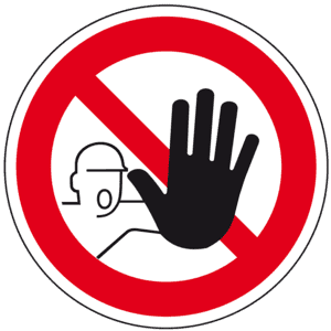 Verbotsschilder dienen der Arbeitssicherheit und zeigen, welche Handlungen nicht ausgeführt werden dürfen oder welche Gegenstände nicht genutzt werden dürfen. Die Piktogramme zeigen Zigaretten, Mobiltelefone, Hunde oder Nahrungsmittel.