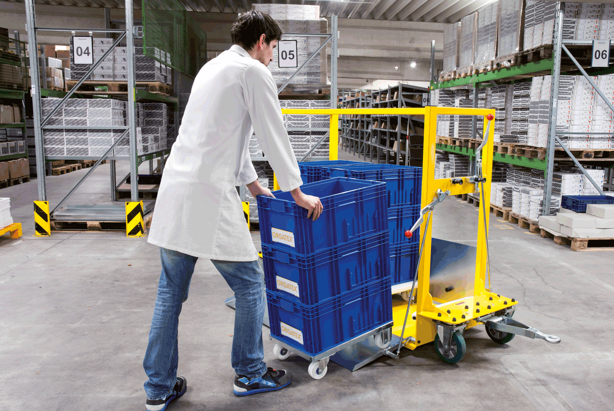 Der ORGATEX Taxiwagen macht den Einsatz von Gabelstapler und Hubwagen in der Intralogistik nahezu überflüssig. Einfaches Be- und Entladen von allen Seiten erleichtert den Milkrun und optimiert den Materialfluss.