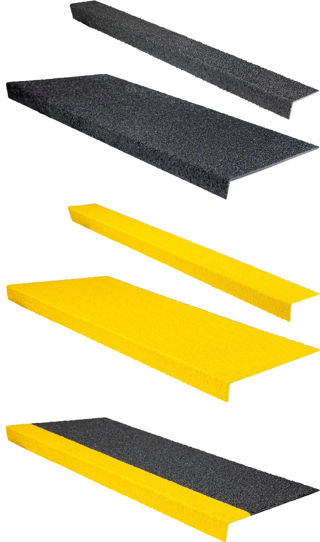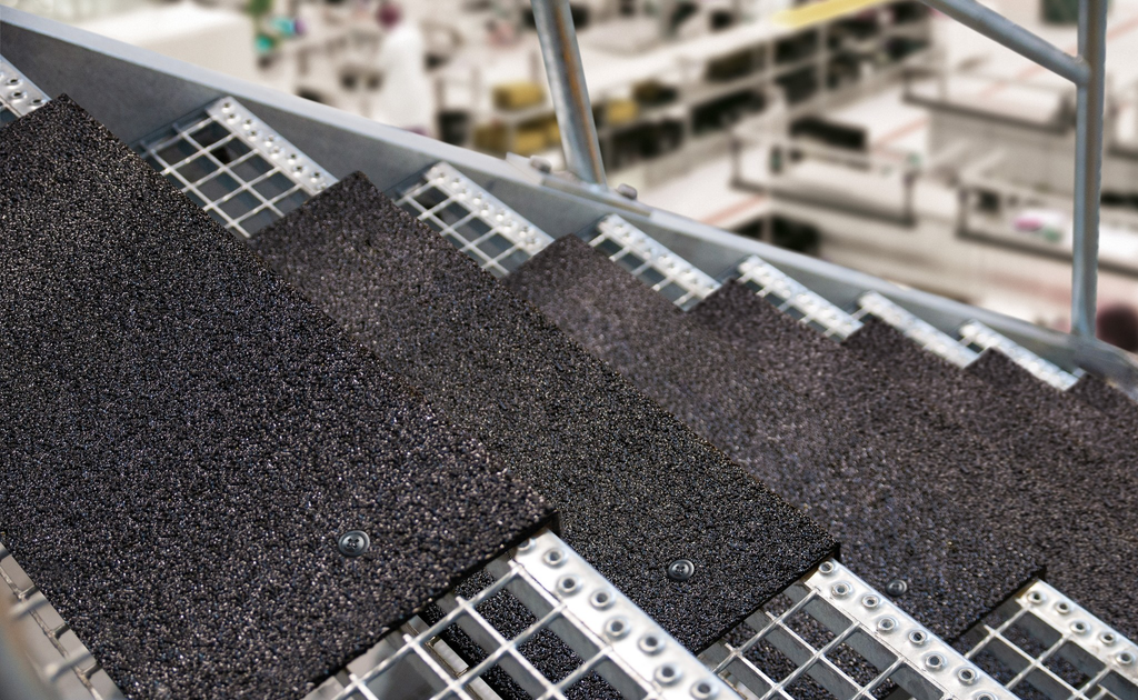 ORGATEX's stair edge profiles offer an effective solution for increasing safety on stair steps. The profiles reliably mark edges and transitions and are awarded the highest slip resistance class R13, which significantly reduces the risk of tripping and falling. Made from durable and long-lasting material, the stair nosing profiles are robust enough for use in high-traffic areas such as stairwells, public buildings or industrial environments. They are easy to fix using screws or mounting adhesive and can be used both indoors and outdoors. In addition, they provide clear visual orientation and contribute to a structured and safe environment. The Heavy Duty profile is extremely wear-resistant and suitable for extreme frequencies. The 3.8mm thick GRP profile (glass fiber reinforced special plastic) has a sealed aluminium oxide grain and is therefore ideally equipped to withstand any load. With the appropriate accessories, the Heavy Duty profiles can also be installed on grating stairs.
