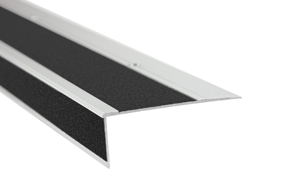 ORGATEX's stair edge profiles offer an effective solution for increasing safety on stair steps. The profiles reliably mark edges and transitions and are awarded the highest slip resistance class R13, which significantly reduces the risk of tripping and falling. Made from durable and long-lasting material, the stair nosing profiles are robust enough for use in high-traffic areas such as stairwells, public buildings or industrial environments. They are easy to fix using screws or mounting adhesive and can be used both indoors and outdoors. In addition, they provide clear visual orientation and contribute to a structured and safe environment. The universal profile is our all-rounder among stair edge profiles. The 2.6mm thick aluminum profile is wear-resistant even under high traffic.