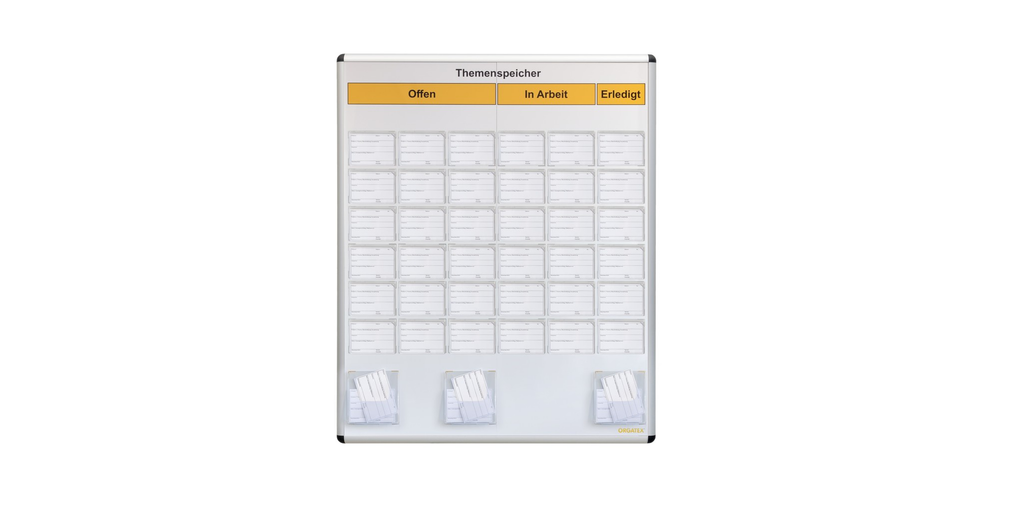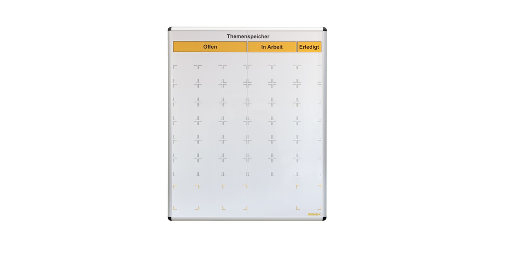 | Design | Frame made of 30x30R aluminium profiles, white edge sheet metal, with magnetic foil, theme storage layout. Scratch-resistant and dry-wipeable. |