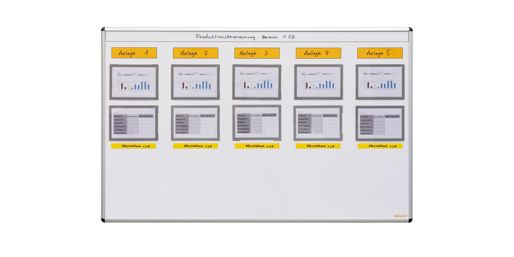The goal is for an agile production team to make decisions every morning during the early morning/production meeting, within the framework of a 24-hour sprint. This meeting covers events from the past 24 hours and provides a preview of the next 24 hours. Key performance indicators (KPIs) throughout the month, as well as daily KPIs from the current and previous week, support this process. We also recommend immediately assigning and documenting necessary actions for each piece of equipment on magnetic strips.