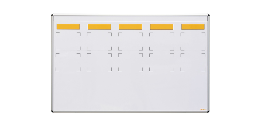 | Design | Frame made of 30x30R aluminium profiles, white edge sheet metal, with magnetic foil, production meeting layout. Scratch-resistant and dry-wipeable |