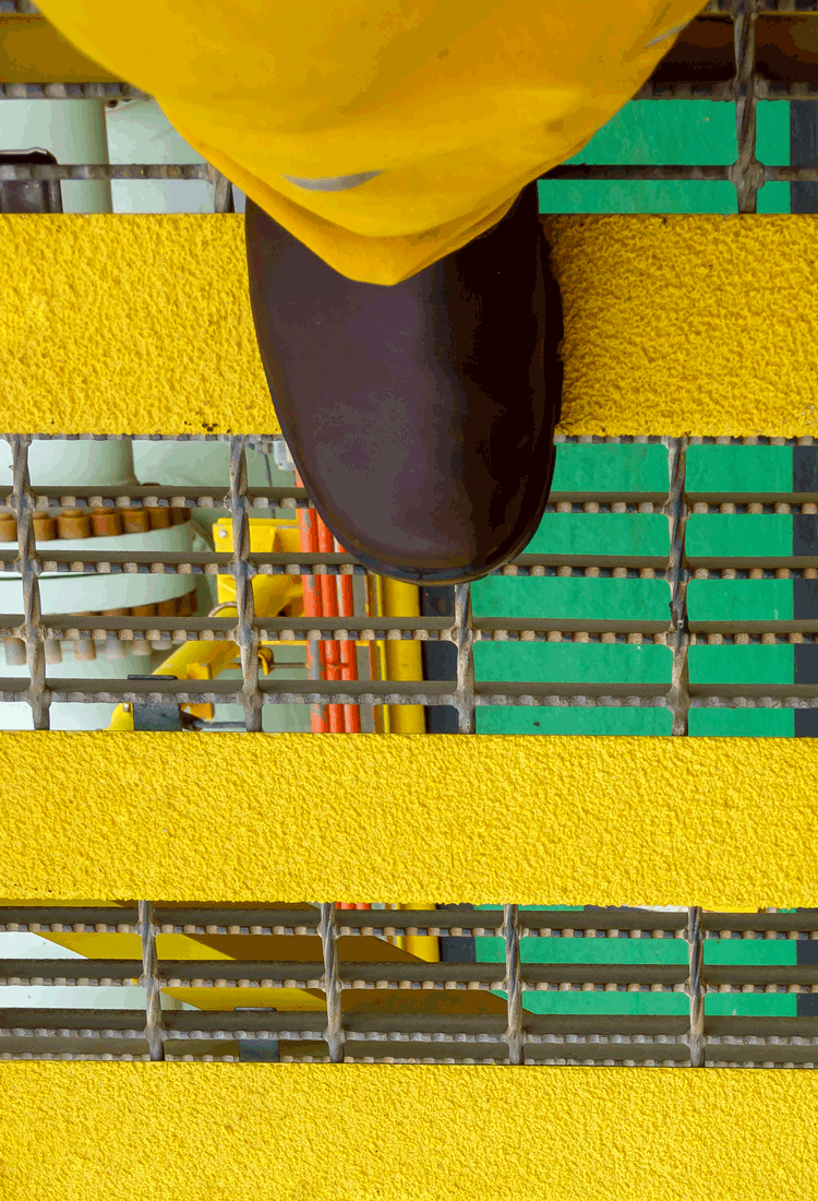 Beschädigte, rutschige oder schlecht sichtbare Treppenstufen gehören zu den größten Unfallquellen im Betrieb.