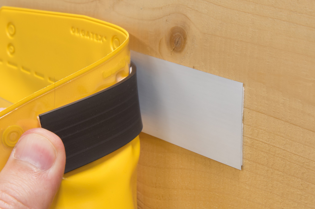 Das Metallband BMS35 von ORGATEX wird mithilfe des aufgebrachten Schaumklebers direkt auf sauberen, trockenen und glatten Untergründen befestigt; auf rauen oder stark verschmutzten Flächen ist vorherige Reinigung empfehlenswert.