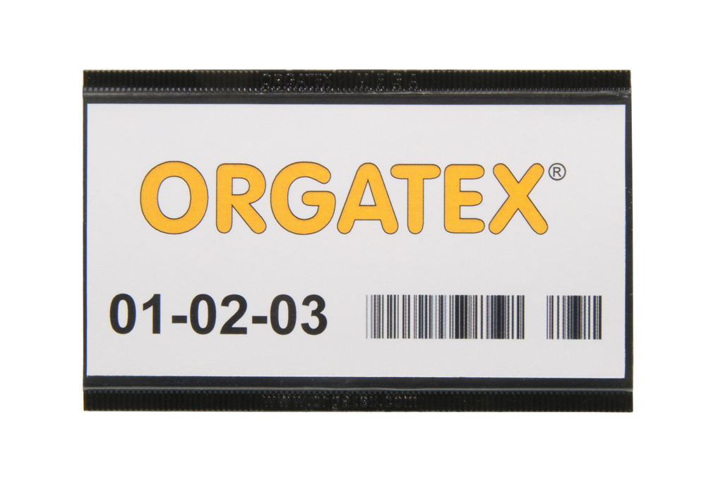 Etiketten lassen sich beidseitig in den ORGATEX Etikettenträger HES460-150/6 einschieben, wodurch ein schneller Wechsel von links oder rechts möglich ist.