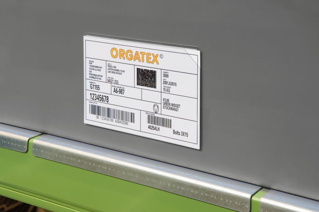 Der Beleghalter von ORGATEX besteht aus robustem Hart-PVC, das Schutz vor Schmutz bietet und für den Industrieeinsatz ausgelegt ist.