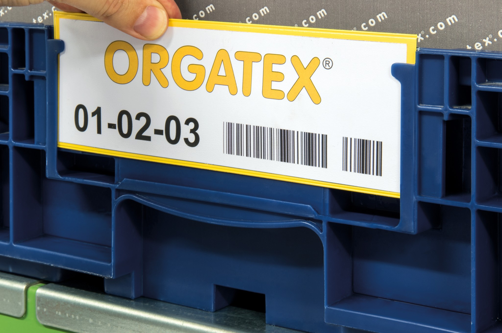 Die KLT-Snapper Etikettenhülle / Kanban-Hülle von ORGATEX ist in der Ausführung an VDA 4902 angelehnt und wurde für den Einsatz an KLT-Behältern konzipiert.