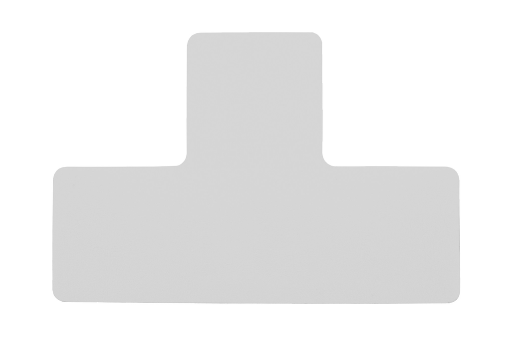Das 100 × 150 mm T‑Stück visualisiert Kreuzungs- und Übergangspunkte klar und reduziert Fehlwege. Die kompakte Form eignet sich zur Kombination mit Längsmarkierungen und Punkten für ein durchgängiges Farbleitsystem.