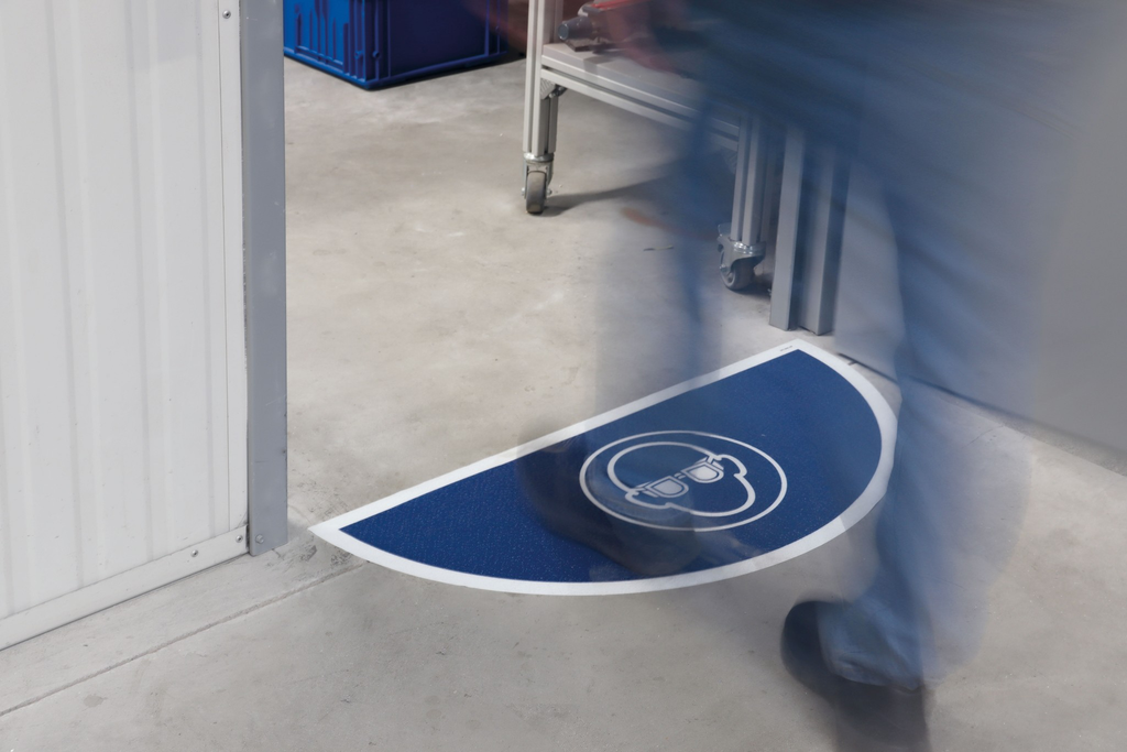 Das LG-SCHILD1/2-4 ist ein selbstklebendes Bodenkennzeichnungsschild (Halbkreis) zur markanten Anzeige von Verbotszonen im Innenbereich.
