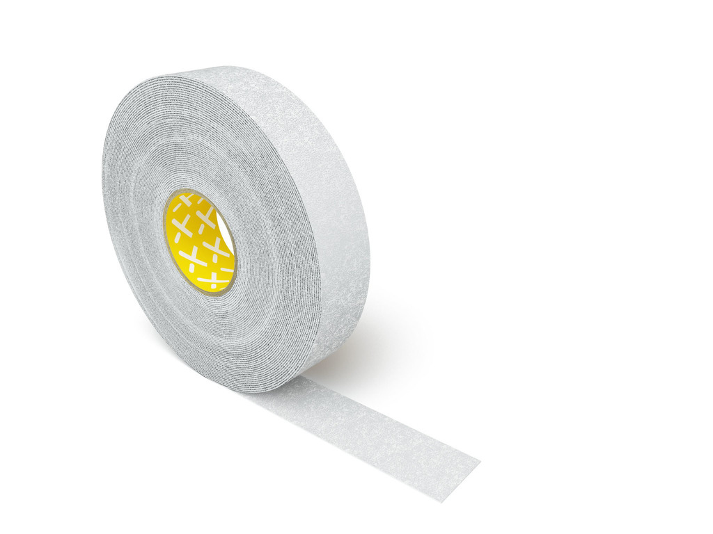 Die Bandware ist selbstklebend ausgeführt und auf Rollen verfügbar, was schnelle Streifenverlegung ermöglicht; bei schwierigen Untergründen empfehlen sich Primer und Andruckroller zur Optimierung.