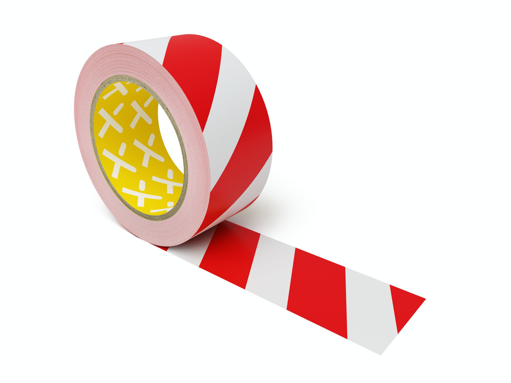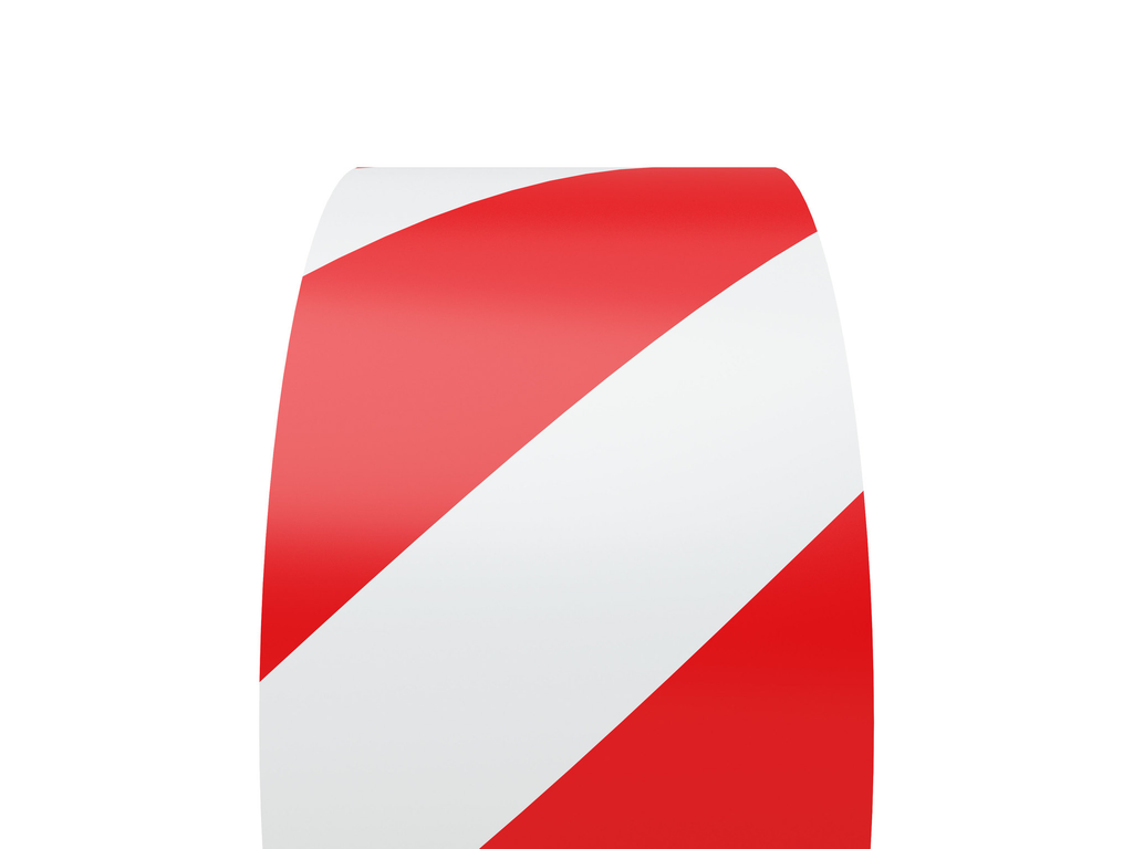 Die Rot/Weiß‑Schraffur sorgt für hohe Fernwirkung und klare visuelle Abgrenzung von Gefahrenzonen und Sperrflächen und unterstützt damit die Sicherheitsorganisation nach 5S-/Lean‑Prinzipien.