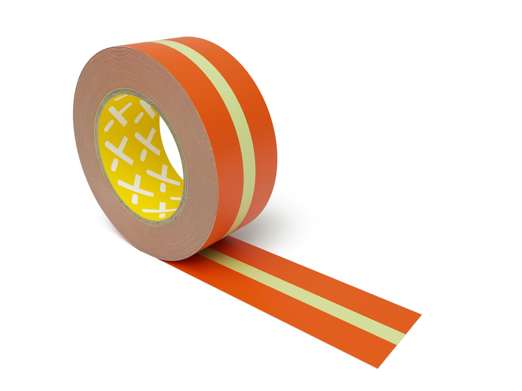 Das Nachleuchtende Band LGNL50-08 von ORGATEX haftet besonders gut auf glatten und leicht rauen Böden; bei stark absorbierenden oder staubigen Oberflächen erhöht ein Primer die Haftung.