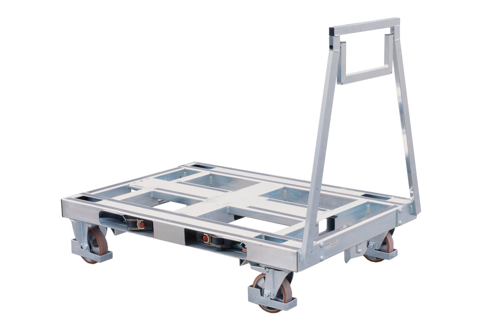 Der Palettenbodenroller entspricht der Standardnorm einer Europalette. Er ist in folgenden Ausführungen erhältlich: mit offenem Boden und einer Rundumkante für die Aufnahme von Holz- oder Kunststoffpaletten, mit einem geschlossenen Boden aus Holz (plywood deck) für kleinere Gebinde und die Anforderungen an KLT-Behälter. Der rückseitig angebrachte Bügel ist mit einem Hängegriff versehen und erleichtert das Ziehen des Bodenrollers. Die Deichsel ist bei diesem Bodenroller komplett versenkbar, das ermöglicht Gabelstaplern die Aufnahme des Palettenbodenrollers von drei Seiten. Optional sind Spanngurte zur Sicherung der Ladung bereits werksseitig im Rahmen verbaut.