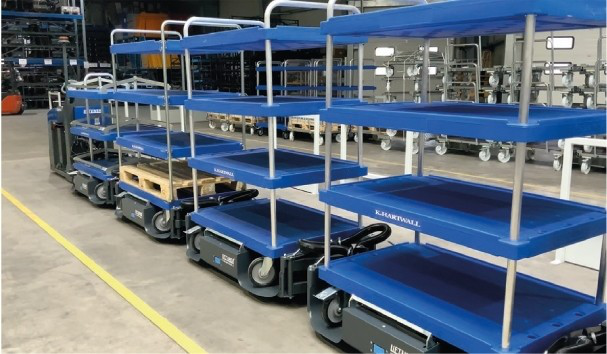 | Ausführung | Bockrollen mit Fußschutz; Lenkrollen mit Feststeller; Schiebebügel (ergonomischer Handgriff); versenkbare Deichsel (Pin/Loch) |