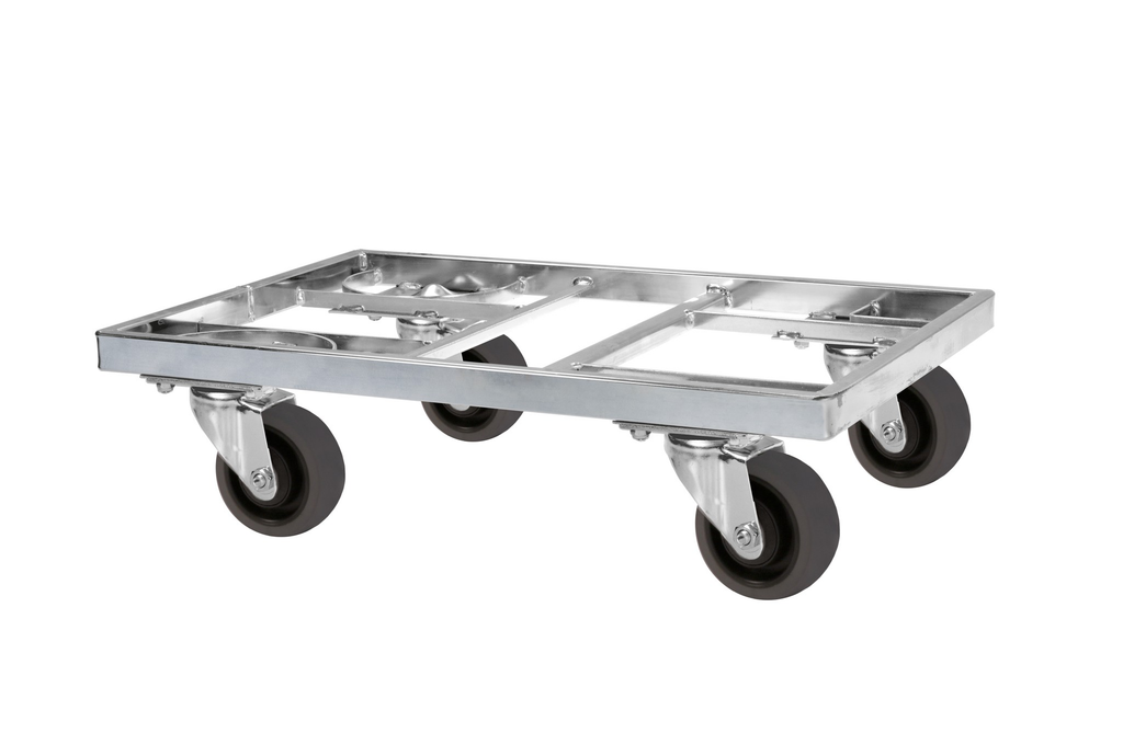 Der Bodenroller 400 - Typ 2 ist ein verzinkter Transportwagen mit 4 Lenkrollen aus Gummi und eignet sich für flexible und schonende Materialbewegung in Produktions- und Lagerbereichen.