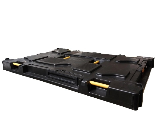 Der Palettendeckel besteht aus Polypropylen, das Leichtigkeit mit hoher Bruchfestigkeit verbindet. Die Konstruktion bietet Schutz vor Verrutschen und punktuellen Belastungen, wodurch die Lebensdauer der Ladeeinheit erhöht und Reparaturaufwand reduziert wird.