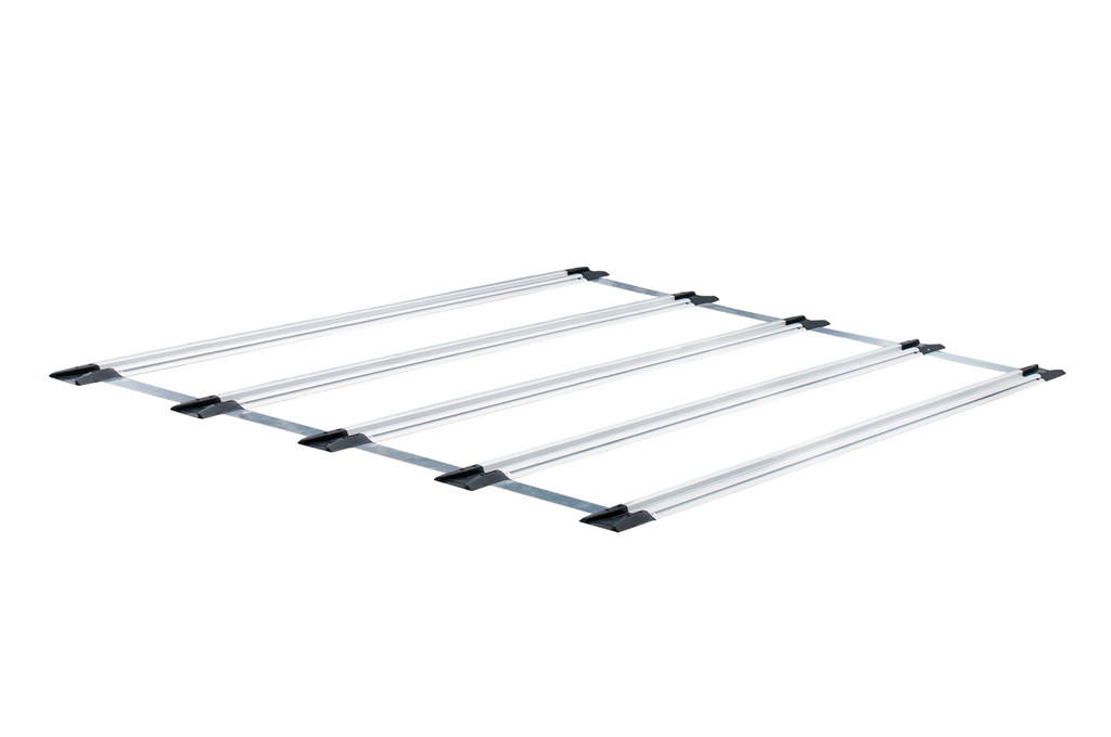 | Ausführung | 5 Schienen (1200mm); 10 Endkappen (schwarz) inkl. 20 Madenschrauben; 8 Verbindungsbleche (400mm) inkl. 32 Hülsenmuttern |