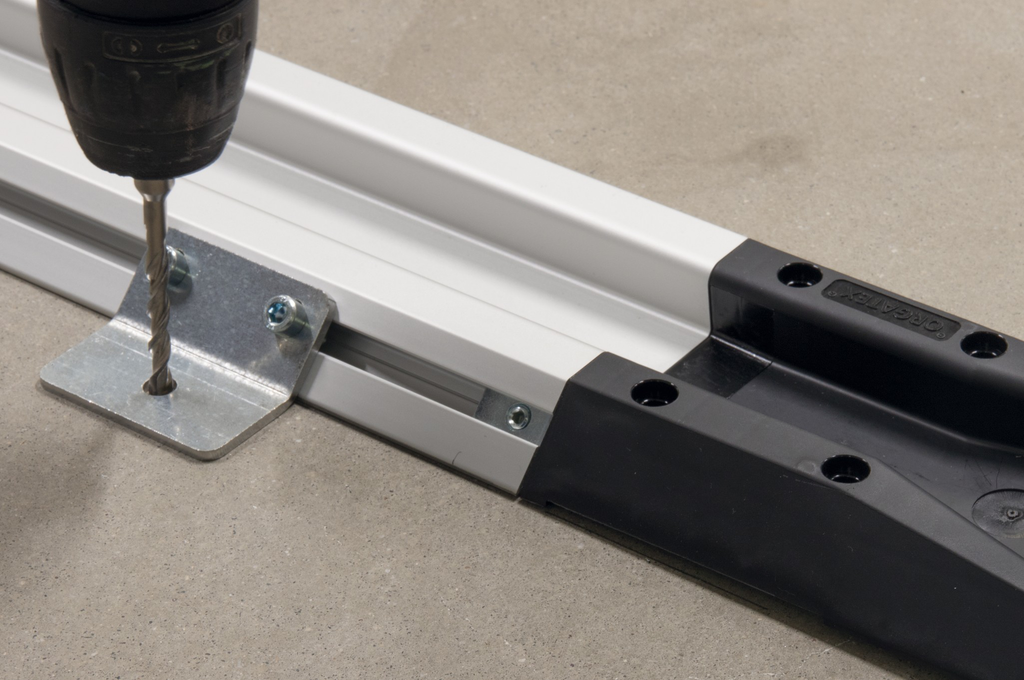 Der Winkel dient zur Fixierung langer Monorail Spuren am Boden (inklusive Befestigungsmaterial).