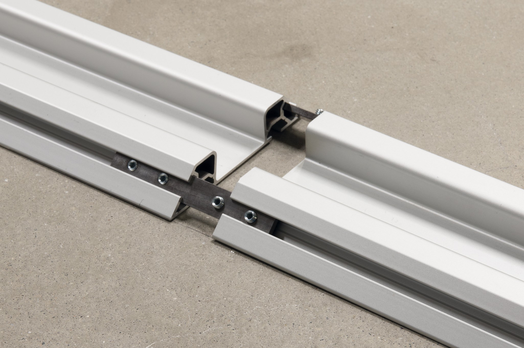 Der Profilverbinder aus Stahl eignet sich zur Schienen-Längsverbindung. Die im Lieferumfang enthaltenen Madenschrauben werden an den 4 Gewindebohrungen verschraubt.