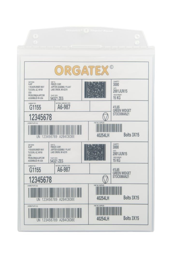 Die ORGATEX Sichttasche SD018-ESD-20 ist im Standardformat DIN A4 hoch ausgeführt und passt damit zu gängigen Dokumenten und Arbeitsanweisungen.