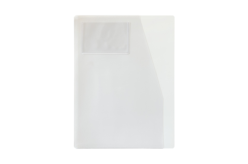 Die oben links aufgeschweißte Tasche bietet Platz für Visitenkarten, Notizen oder Kurzvermerke und erleichtert die unmittelbare Zuordnung von Dokumenten zu Verantwortlichen.