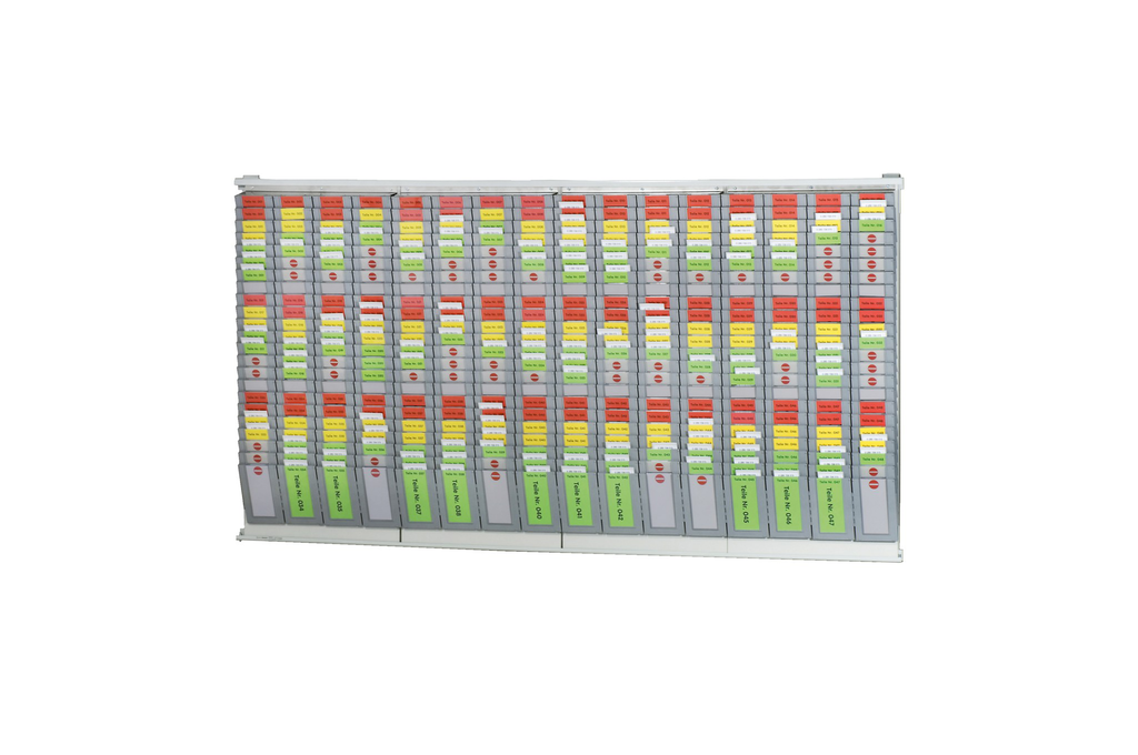 Kanban-Boards dienen der Steuerung von Produktionsabläufen. Durch Einsatz der Kanban-Methode erreicht man eine Reduzierung der Bestände und erhöht gleichzeitig die Lieferfähigkeit. Das Kanban-Starterset besteht aus einem Greyboard, Systemboxen, Einsteckschildern, Kartoneinlagen und Befestigungsmaterial. Bitte rufen Sie uns an, damit wir Ihr individuelles Board zusammenstellen können.