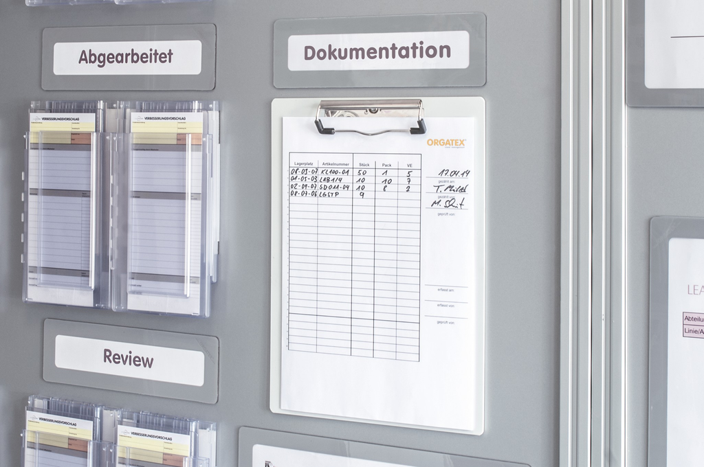 Das Klemmbrett von ORGATEX ist der ideale Begleiter, wenn keine feste Schreibunterlage zur Verfügung steht. Ob in Lager, Produktion, Büro oder unterwegs – es sorgt für eine stabile Schreibfläche und ermöglicht das strukturierte Arbeiten an jedem Einsatzort.